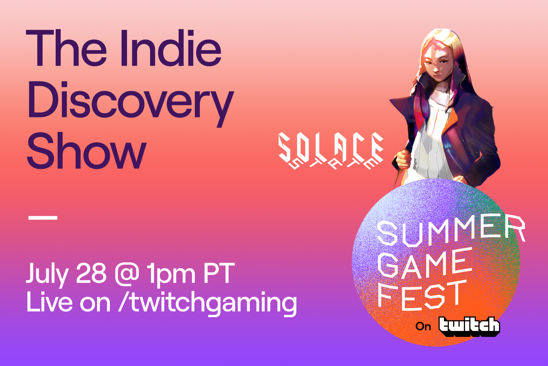 Solace State is excited to announce that we will be featured at Twitch’s own Indie Discovery Show tomorrow as part of Summer Game Fest!