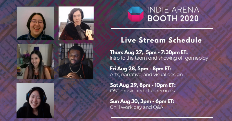 Who's partaking in the Let's Play livestream? Tanya Kan, Director and Executive Producer Gabi Kim Passos, Lead Developer Seage Howlett, Character Artist Julia Pyo, Community Manager