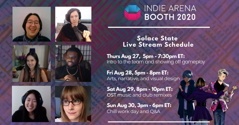 This Sunday Aug 30 at 3pm ET, join the devs of the award-winning game Solace State in a chill hangout about gamedev and lifestyle, and answer your fabulous questions! It'll be right here on our Steam page! See a sneak peek into the everyday of our game's development, and what's new and unique about Solace State. The stream will run until the end of the Indie Arena Expo!
