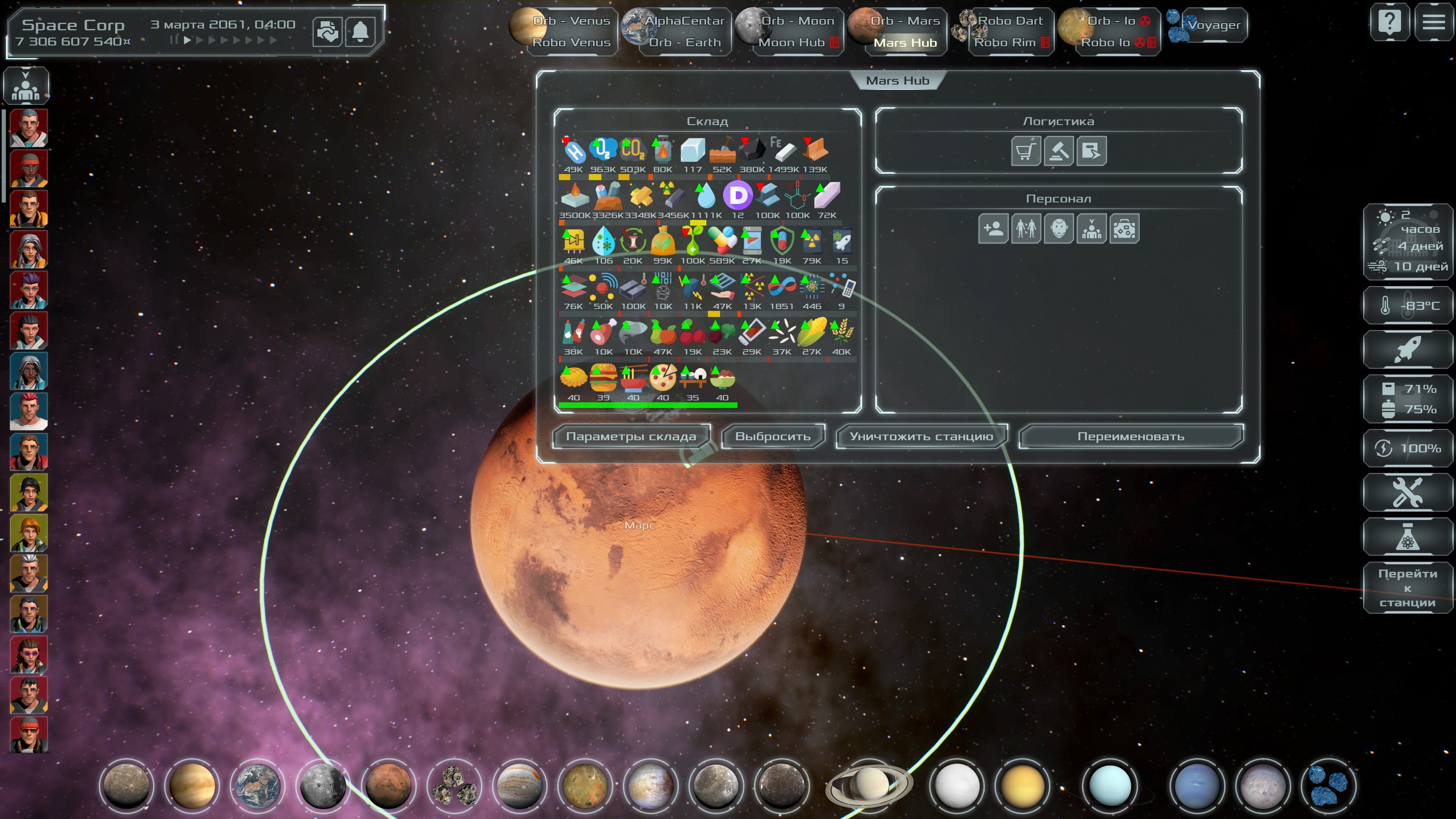 The development of version 0.16 is proceeding according to plan and has been done since: 1. DLSS support has been added 2. Reassign the keys in the Control settings dialog 3. Added support for Steam cloud saves 4. Added planet indicators at the bottom of the screen 5. The panel of the selected planet has been added 6. The panel of the selected asteroid belt has been added 7. Added an indicator with company name, money, time and time management 8. Colony indicator buttons at the top of the screen 9. Pop-up panel for quick access to any colony at the top of the screen 10. New staff panel on the left of the screen 11. New staff panel on the left of the screen 12. New panel 'Weather and Resources' on the right of the screen 13. New Temperature panel on the right of the screen 14. New Logistics panel on the right of the screen 15. new "Warehouse" panel on the right of the screen 16. New Energy panel on the right of the screen 17. New "Maintenance" panel on the right of the screen 18. New 'Research' panel on the right of the screen 19. New Staff Movement panel on the right of the screen 20. New Buildings panel on the right of the screen 21. New room panel on the right of the screen 22. New ship panel on the right of the screen 23. Added keyboard shortcuts for displaying panels 24. New construction panel at the bottom of the screen 25. a separate tool for dismantling ladders 26. a separate tool for quick dismantling of objects After the development of the version is completed, it will be available first in the Beta branch.