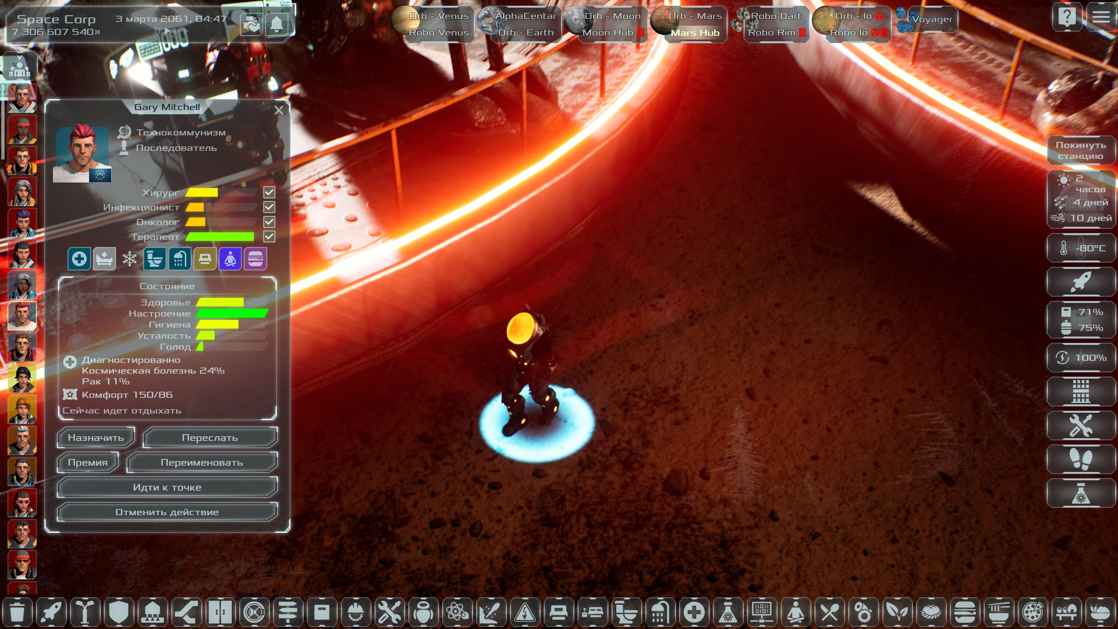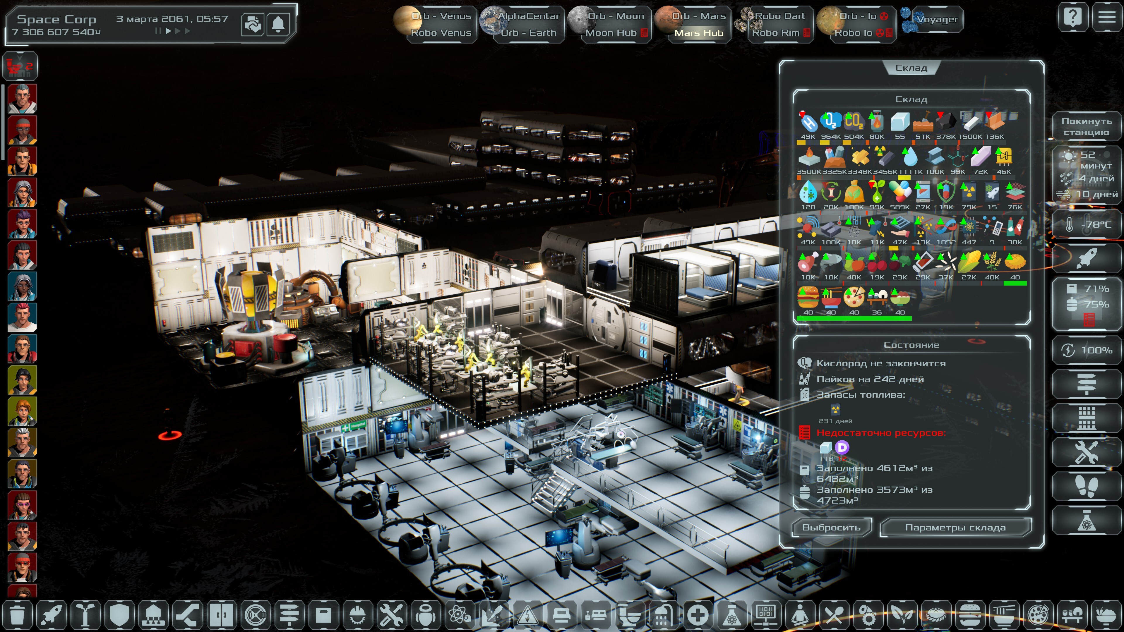 * fixed automatic power on at the space station * fixed the model of one of the high-tech machines * fixed falling when the room collapses fixed resource consumption by an idle clone production machine * fixed resource consumption during robot production * Fixed robot repairs by robots when the player is out of the colony * People in hibernation do not consume oxygen to breathe * fixed arrival of tourists to tourist colonies * fixed accessibility of cafe jobs * fixed cryocapsule collision * Fixed indication of power shortage when using wireless power transmission in the colony * tourists and patients under a treatment contract do not need augmentation * fixed falling off an asteroid * fixed the display of the research tree * Fixed the appearance of Titan when viewed from the solar system ! increased productivity in the form of a solar system ! fixed falls during the destruction of rooms with personnel * fixed the work and rest of staff when in a bad mood