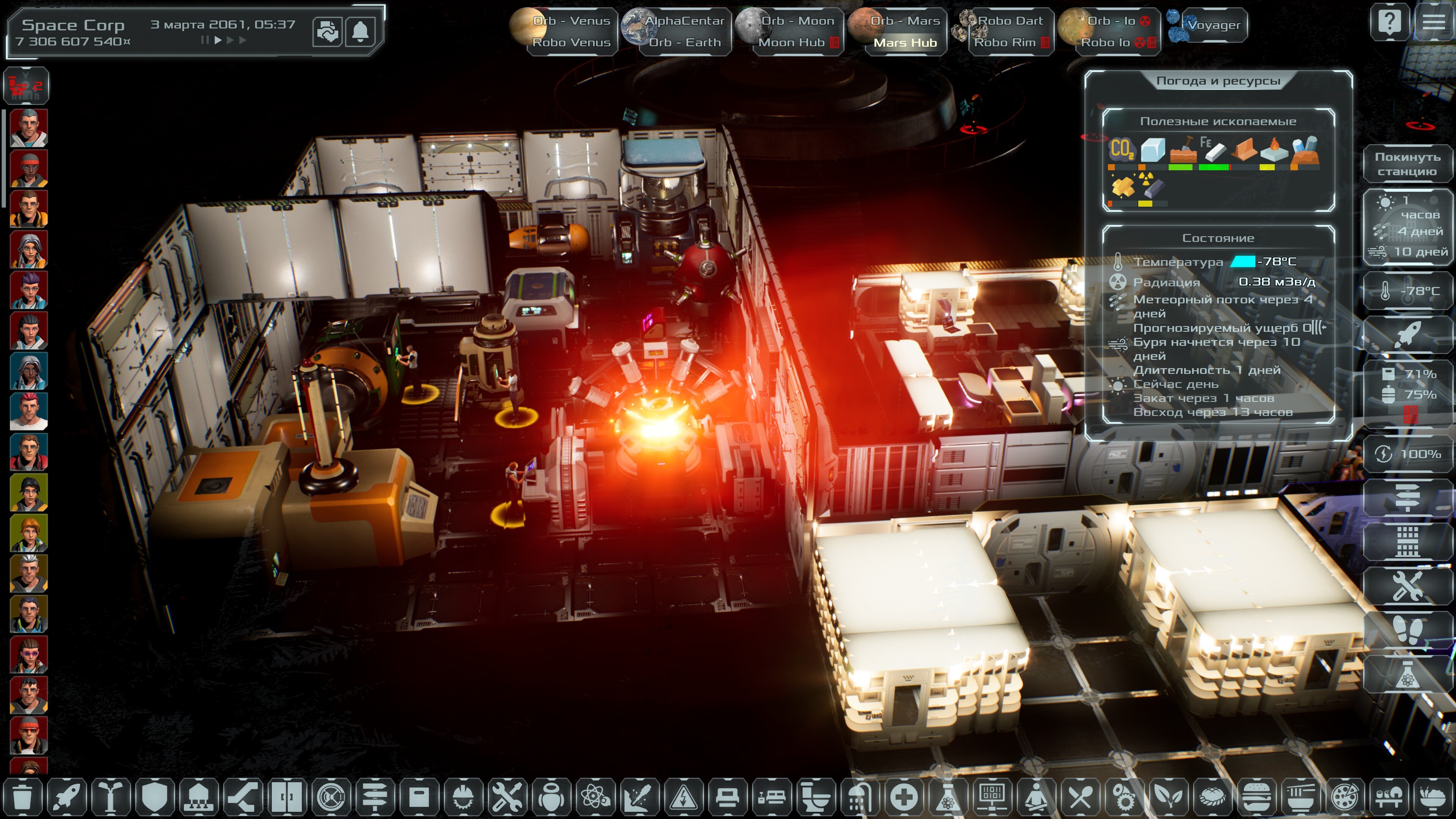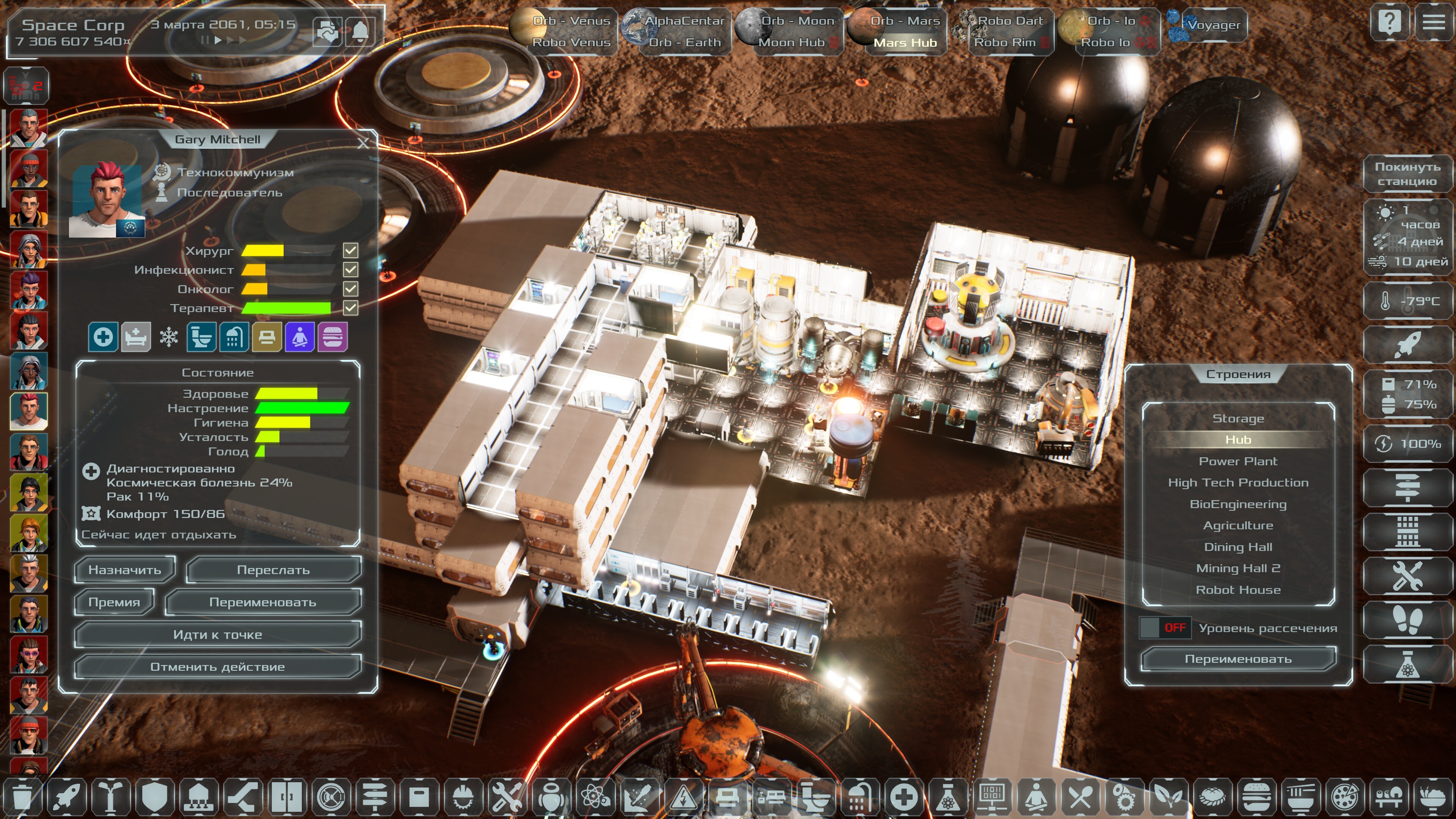 In version 0.15, the Space Corporation simulator has acquired a holistic and complete gameplay. While previous updates were more technological in nature - construction, logistics and automation, the latest updates have brought a greater social component. In addition to the previously added hygiene needs, various diseases and methods of their treatment, individual character traits of the staff have been added (affecting the behavior of the character and his interaction with colleagues), as well as ideologies on which the outcome of the elections in the colony and the laws that will apply in it depend. Strong leaders are able to win over colleagues to their side and change the ideology in the colony and change the voting results next month. If inexperienced employees are willing to work in spartan conditions, more experienced colleagues now need increased comfort conditions, which can be provided with more expensive furniture and more individual rooms. Even more new features became available after research - augmentations to improve staff capabilities, robots - can do most of the work for humans and do not require food or comfortable conditions, and yes, it is now possible to create an entire colony of clones mining Helium-3 on the Moon =) The financial model, salaries and bonuses of staff, as well as Loans from gaming nations as a way to get money quickly, which will need to be repaid with interest. Completely redesigned game nations and contracts with them make the game more exciting and more unique and balanced each time. Finally, the game now has a story mode that gives the player not only a goal, but also the opportunity to complete the game.