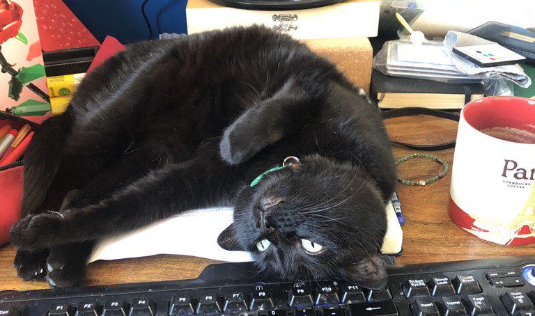 Home office perk: Warming your lap with cats. Provides heating and relaxation!