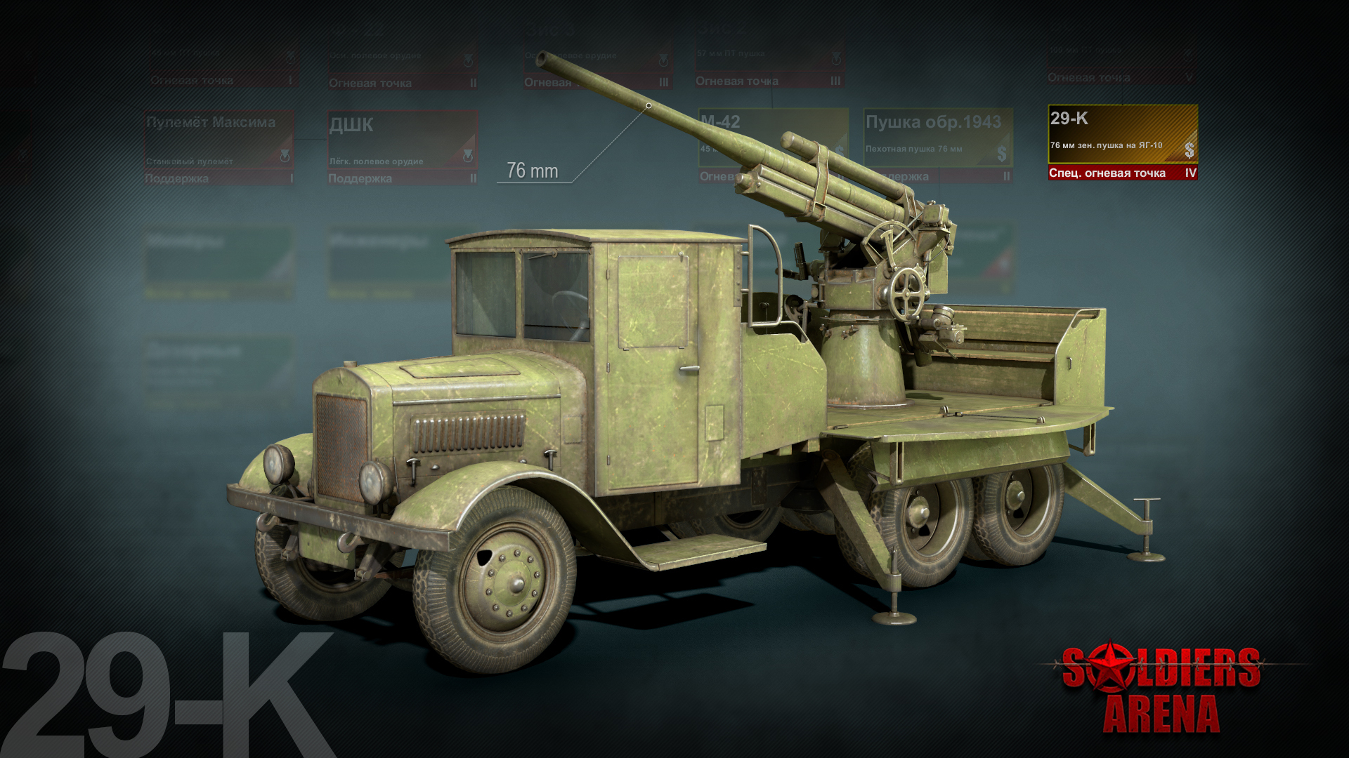 We did not include most of the SPGs here, because they are closer to the tanks in the devtree, and we will write about them in the next diary. But even without self-propelled guns, the artilleryman has a wide range of tools to destroy any enemy. Collecting the deck, you can adjust it to your style and add some infantry aggressiveness, self-propelled mobility or howitzer large-caliberness. How to play and how to assemble a commander is up to you. In Soldiers: Arena, the artilleryman does not have to sit in the bushes all the time. Despite the fact that most guns in this group are good at long distances, they can be played aggressively. After all, the closer the distance to the target, the more likely the ‘one-shot’ is, so sometimes it's more profitable to get to a good position for a shot rather than to aim for long - Especially if you support allied forces or they support you. It makes sense to recall the experience of assault troops during the battles for Stalingrad or Koenigsberg, which included sappers, scouts, riflemen, several machine guns, anti-tank guns and cannons. This tactic also works in Soldiers: Arena, and Zis-3 or 53-K, for example, are lightweight and mobile enough to be moved by the forces of their crew and, moving along with the infantry, to support the offensive. Most often, seeing the advancing infantry, the enemy calls something inexpensive and capable of stopping it. Whether it's a machine gun, an armored car or a medium tank, such an assault team will overcome this barrier without hindering the advance. If you were always embarrassed by the contemplation of the artillery gameplay, it's time to reconsider your views. Any deck can be good in Soldiers: Arena, if you know what you are doing.