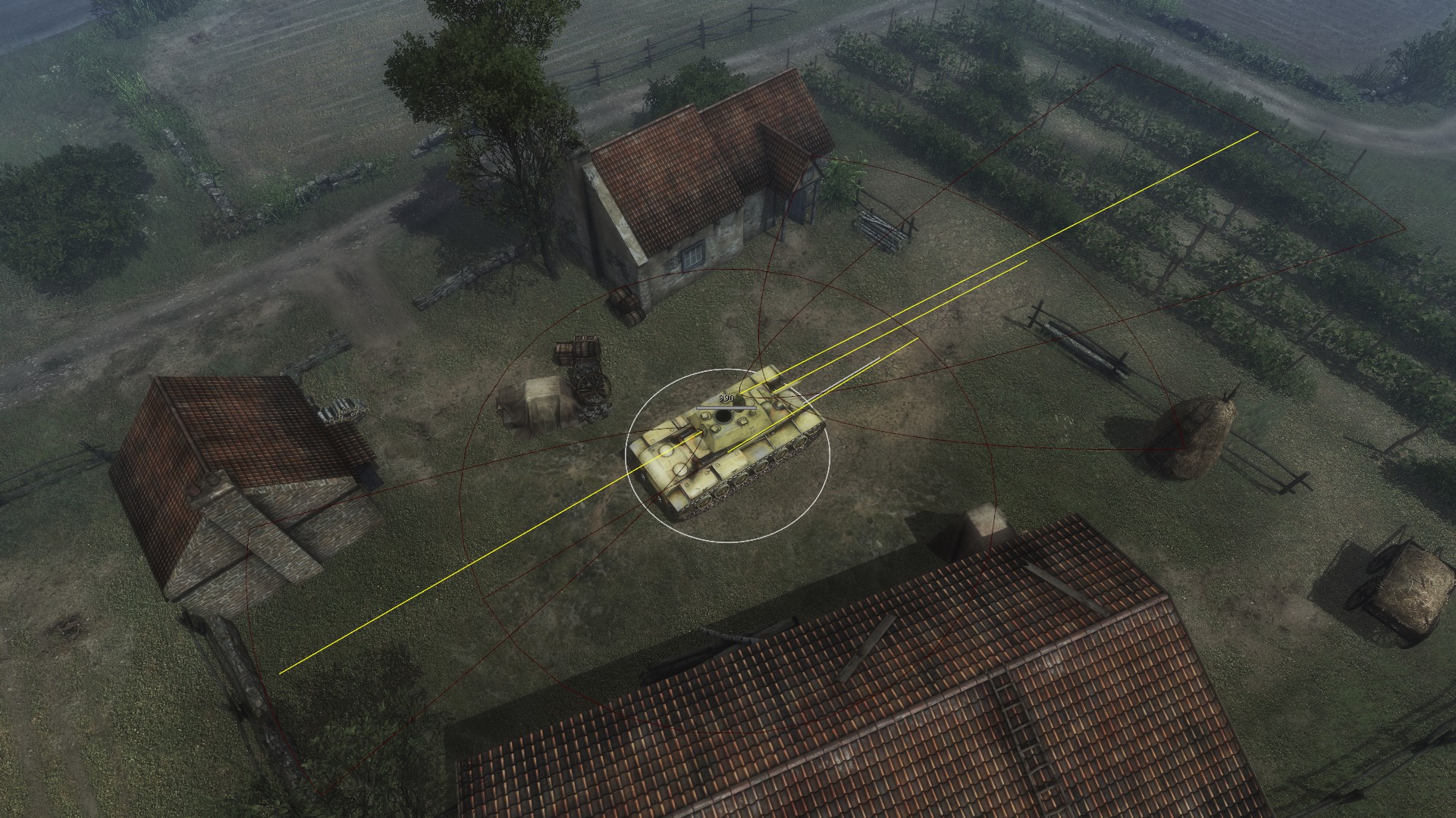 Next, for a better visualization of the process, we’ll show some screenshots from the editor, which show the viewports in their debug mode. You won’t see any unnecessary lines in the game ofc. So here is the specific visual example. Here is our KV-1.