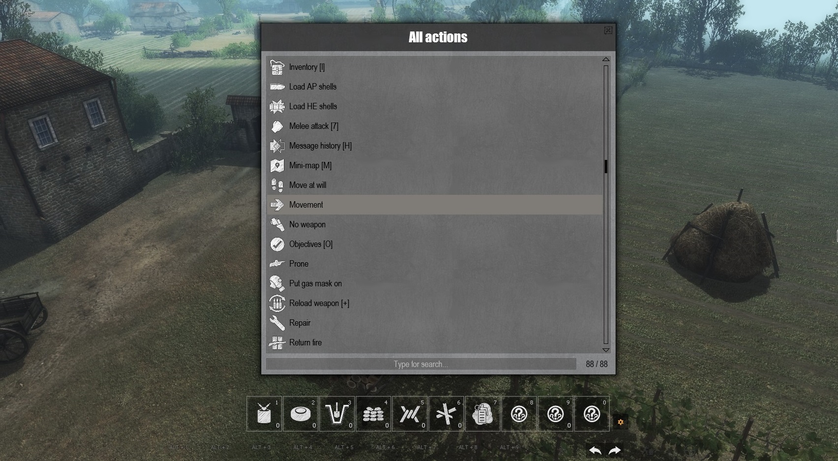 Now the hotbars are configured by types: infantry, tank, artillery. In the future, we plan to deepen this system so that each unit has its own hotbar and the player will only see the commands of the selected unit. So darkening is a temporary half-measure, but even with it you are not distracted by buttons that are inaccessible to use. While it is not entirely clear whether we will be able to do this until the start of the beta, but we are trying to do so. The possibilities for customizing the hotbar have also expanded significantly. Now you can add the commands you need from the extensive list shown below.