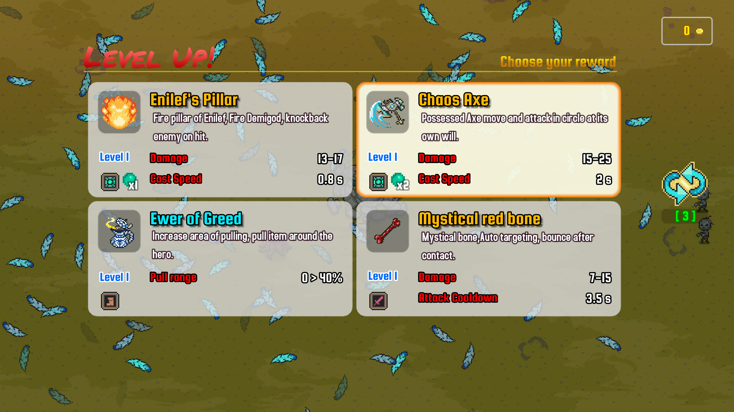 Re-roll is now updated to the main branch, both in the level up reward and Goddess totem reward selection. Although, RNG is not perfect but it should help you to easily build up your favourite build. We plan to update game RNG later.
