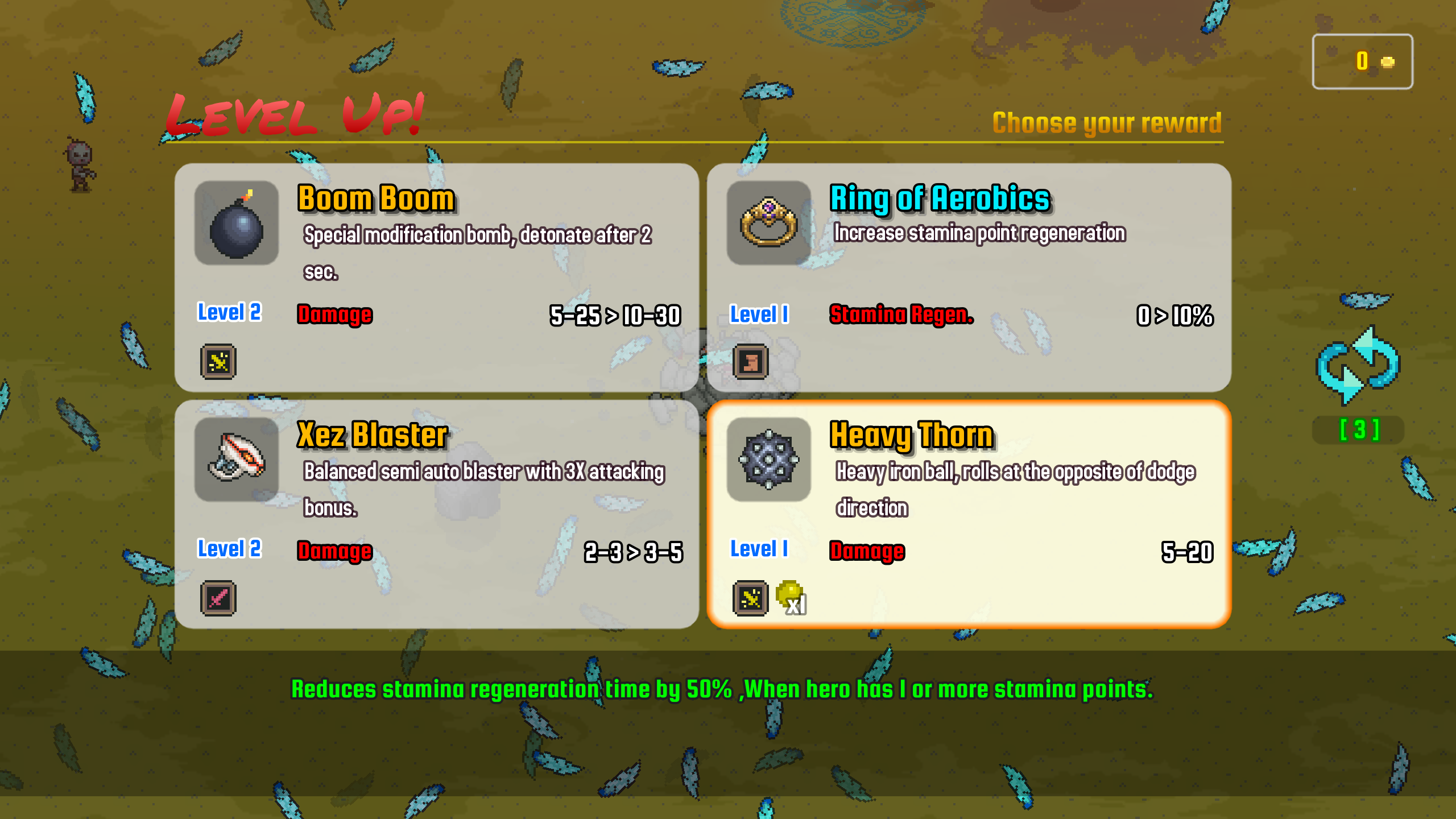 "Re-roll" is added to the game. At the level up screen, You could re-roll item reward for free up to 3 times in the run, after that you need to spend some money for the re-roll.