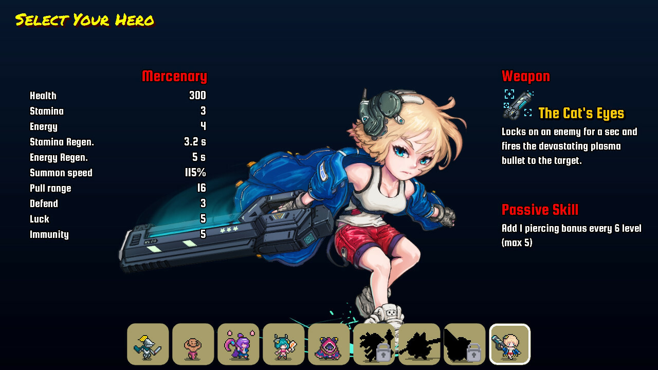 - 2 new achievements for unlocking The Little Reaper and Mercenary's weapon. - Improved Giga drill behavior, The weapon now continually deal of 20% base damage to the enemy in the bullet area. - Fixed joystick and keyboard focus losing after re-roll.