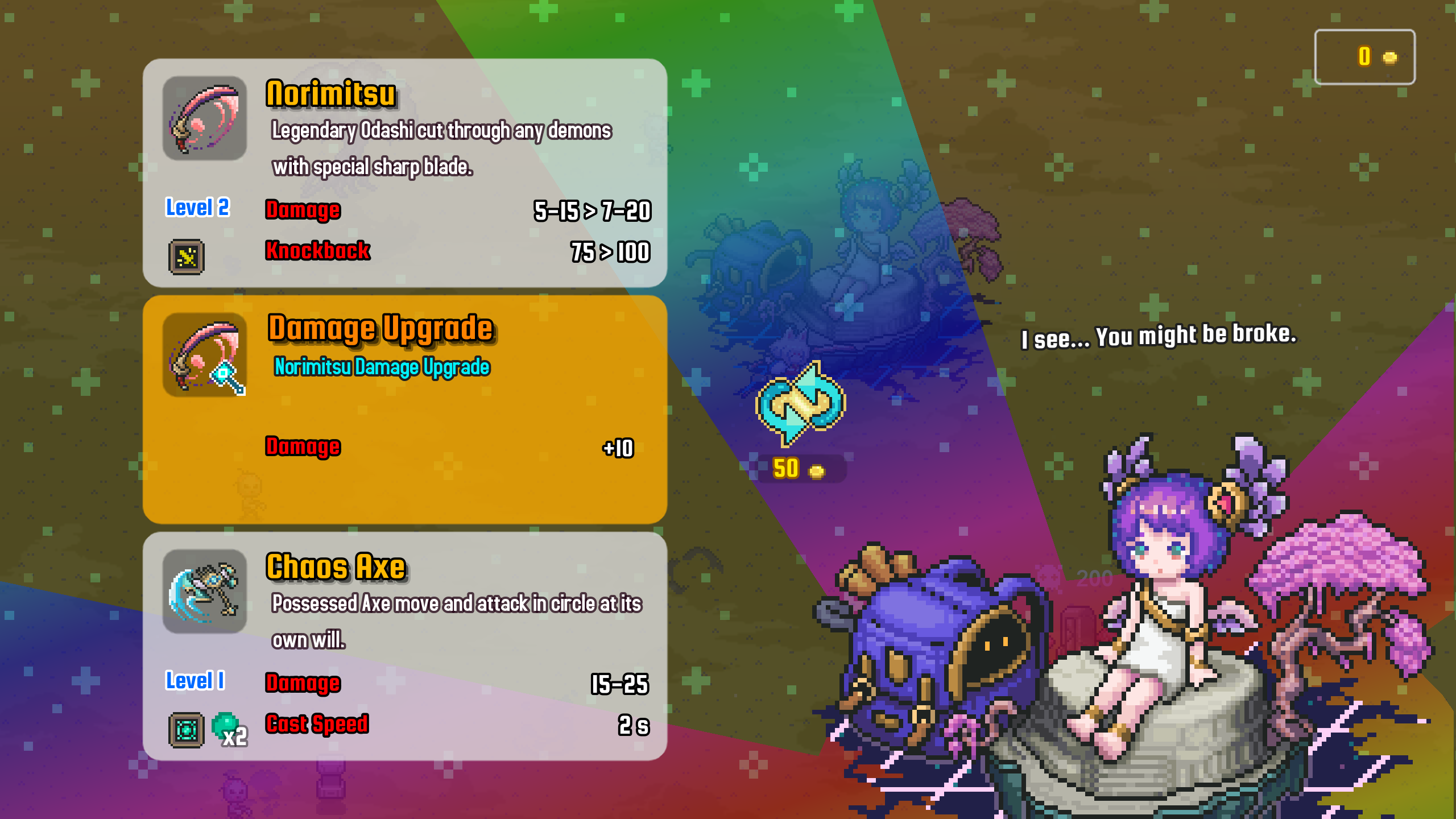 Bugs Fixed - Movement sometimes stopped when using mouse for dodging along with keyboard movement. - Level up while enter the angel totem cause a game stuck at the pause state. - Boss do damage to the player while selecting an upgrade at the goddess totem.