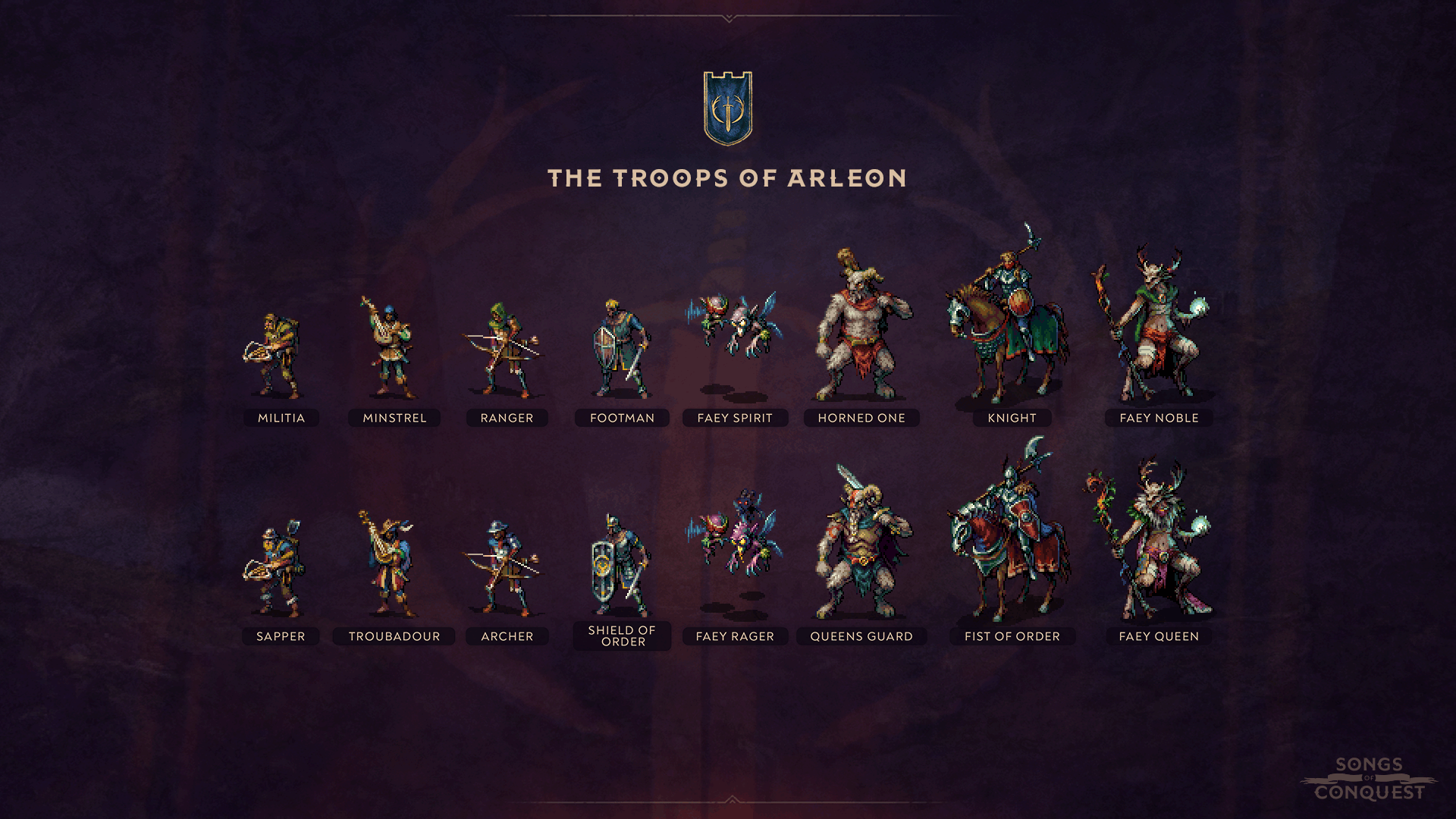 Here they are in their full glory, the whole Arleon troop lineup. Most of these troops have been shown before, but this is the first time we show them all off in one image, including all upgrades. What do you think?