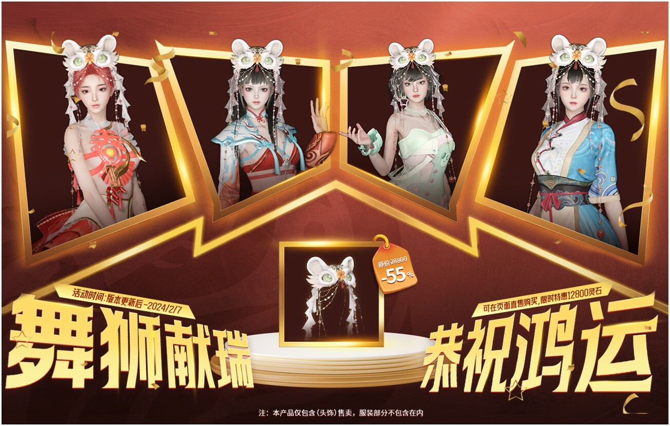 Event Time: Starting after the version update - February 7, 2025 During the event, New Spring limited headwear will be available at a special discount and can be purchased directly on the page. During the event, New Spring greeting actions will be available at a special discount for only 990 Spirit Stones and can be purchased directly on the page.