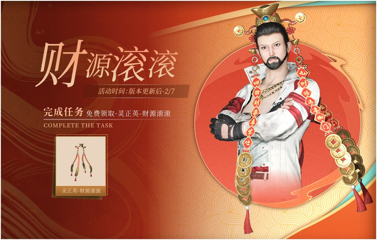 Event Time: Starting after the version update - February 7, 2025 During the event, complete the limited-time Spring Festival active tasks to receive "Ling Zhengying - Wealth Abounds."