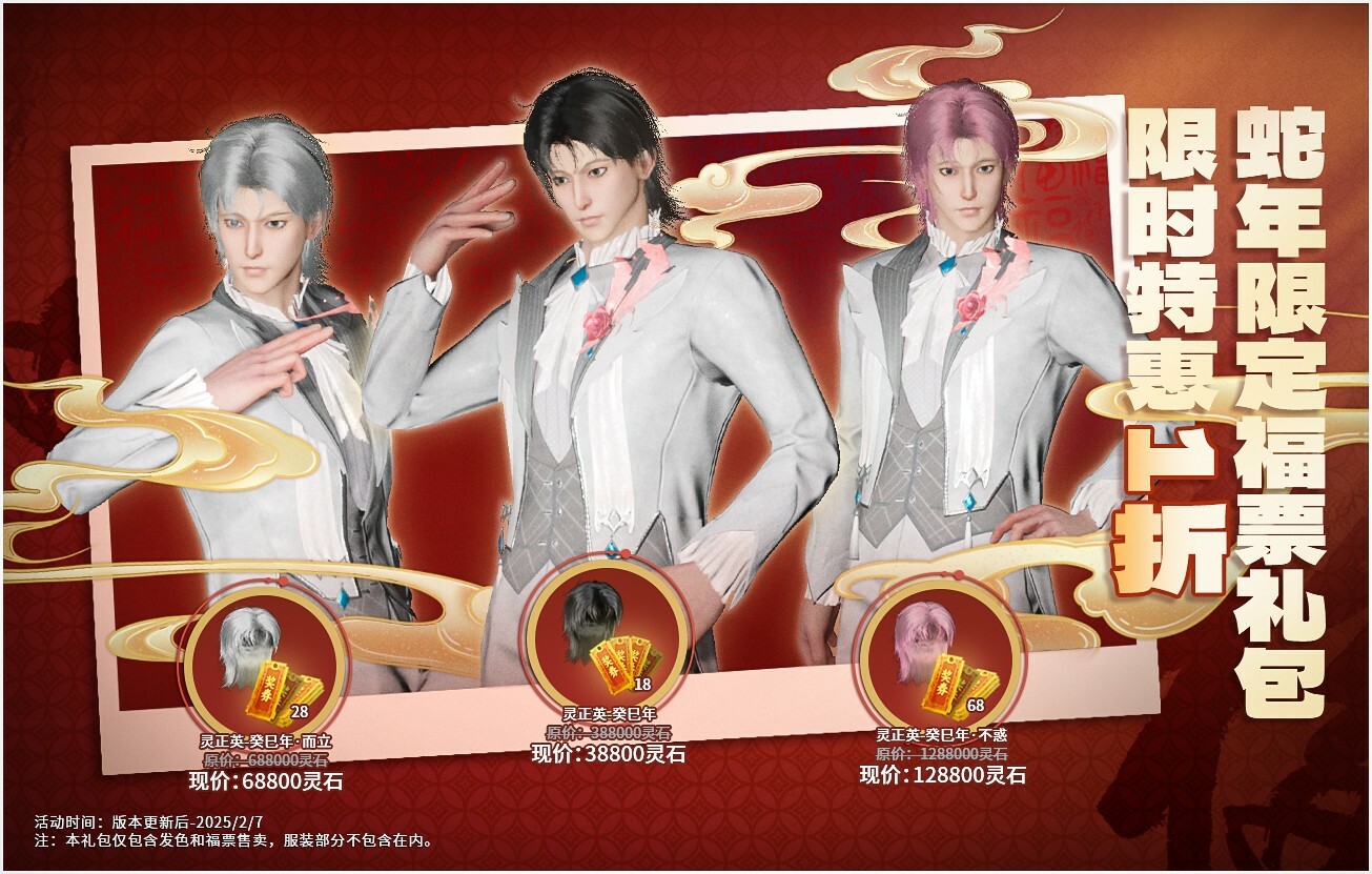Event Time: Starting after the version update - February 7, 2025 During the event, the Snake Year limited fortune ticket bundle will be available at a special discount. Purchase the [Snake Year Fortune Ticket Bundle] at 10% off, which includes Ling Zhengying's Snake Year limited hairstyle and a large number of fortune tickets!
