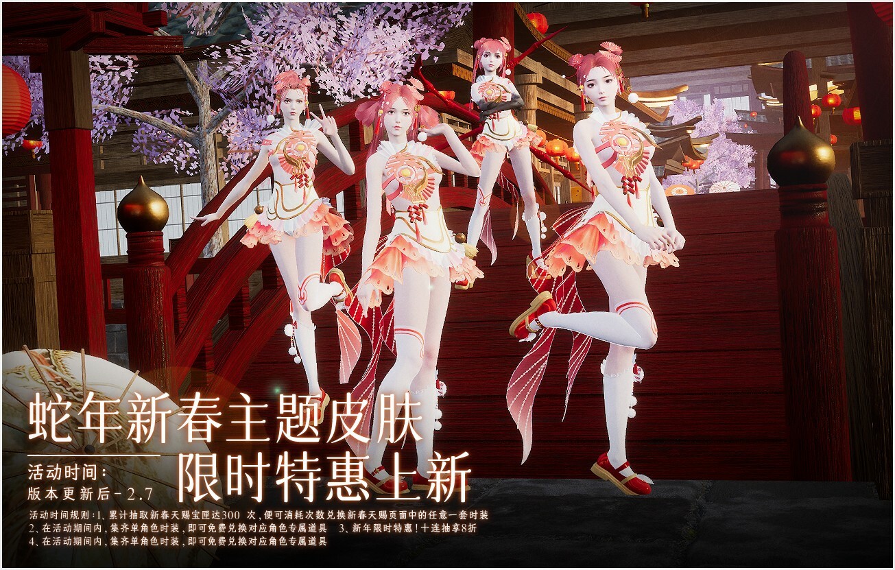 Event Time: Starting after the version update - February 7, 2025 The New Spring's Heavenly Gift Box will be available for a limited time. The box includes previous New Year series costumes and Snake Year limited-time costumes. Accumulate 300 draws of the New Spring's Heavenly Gift Box to exchange for any costume set in the New Spring's Heavenly page. Snake Year limited skins include skill sound effects and exclusive New Year idle animations after collection. During the event, collect a full set of a single character's costume to freely exchange for the following exclusive items: Xiao Zhu: "Xiao Zhu - Silky As You Wish (BGM)," "Xiao Zhu - Carefree (Ghost Fog)" He Ruoyao: "He Ruoyao - Peaceful Si Si (Hair Color)" Lin Mughan: "Lin Mughan - As You Wish Si Si (Hair Color)" Su Qingli: "Su Qingli - Auspicious Si Si (Hair Color)"