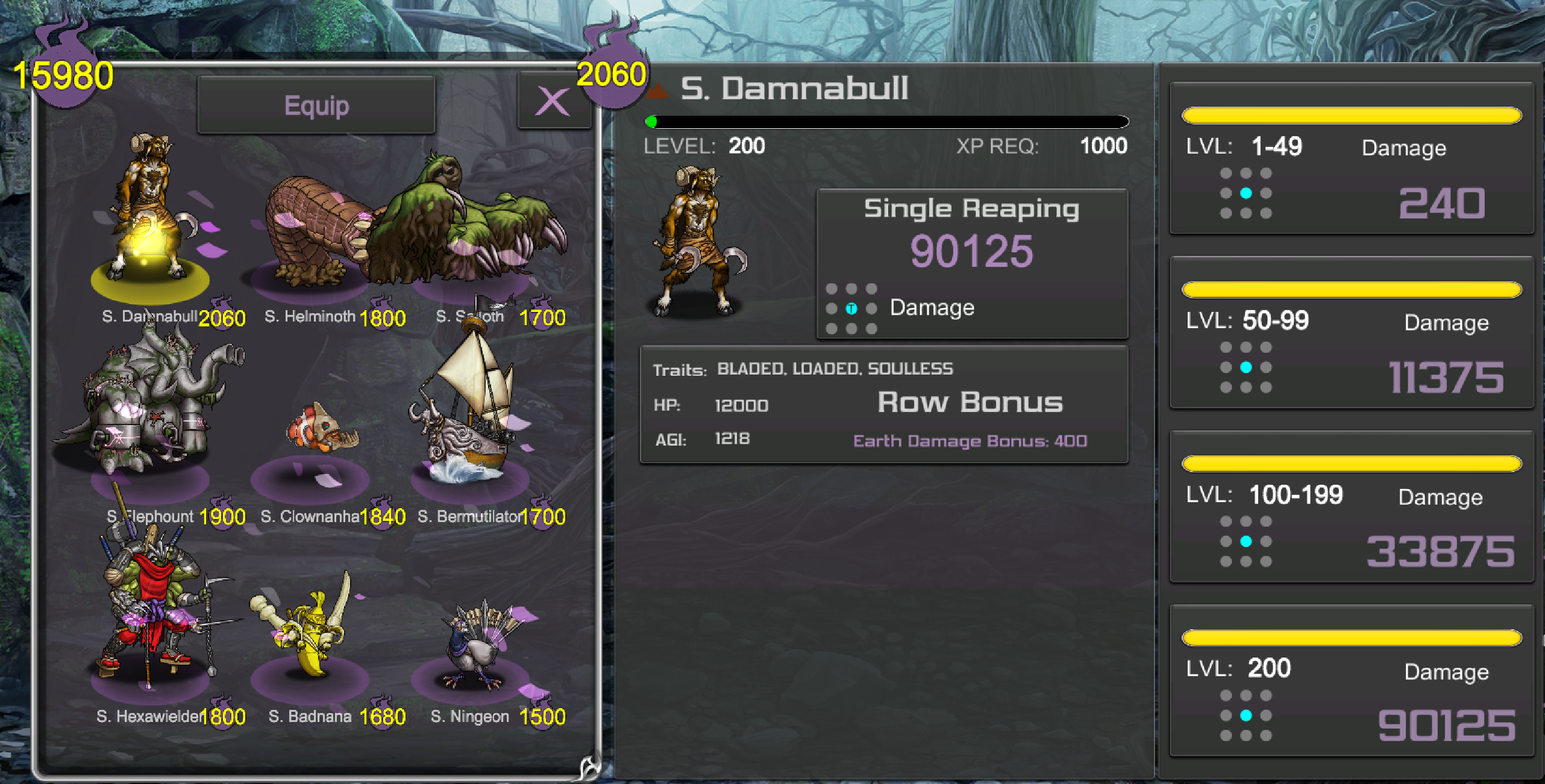 We'll do more bug fixing in future updates, but for this one, we've fixed some bugs regarding the monster and soul attributes. Some of them were not giving you exactly what it said. For example, the Bermutilator was showing that it was doing damage to all monsters at max level when it really was doing damage to two columns only.