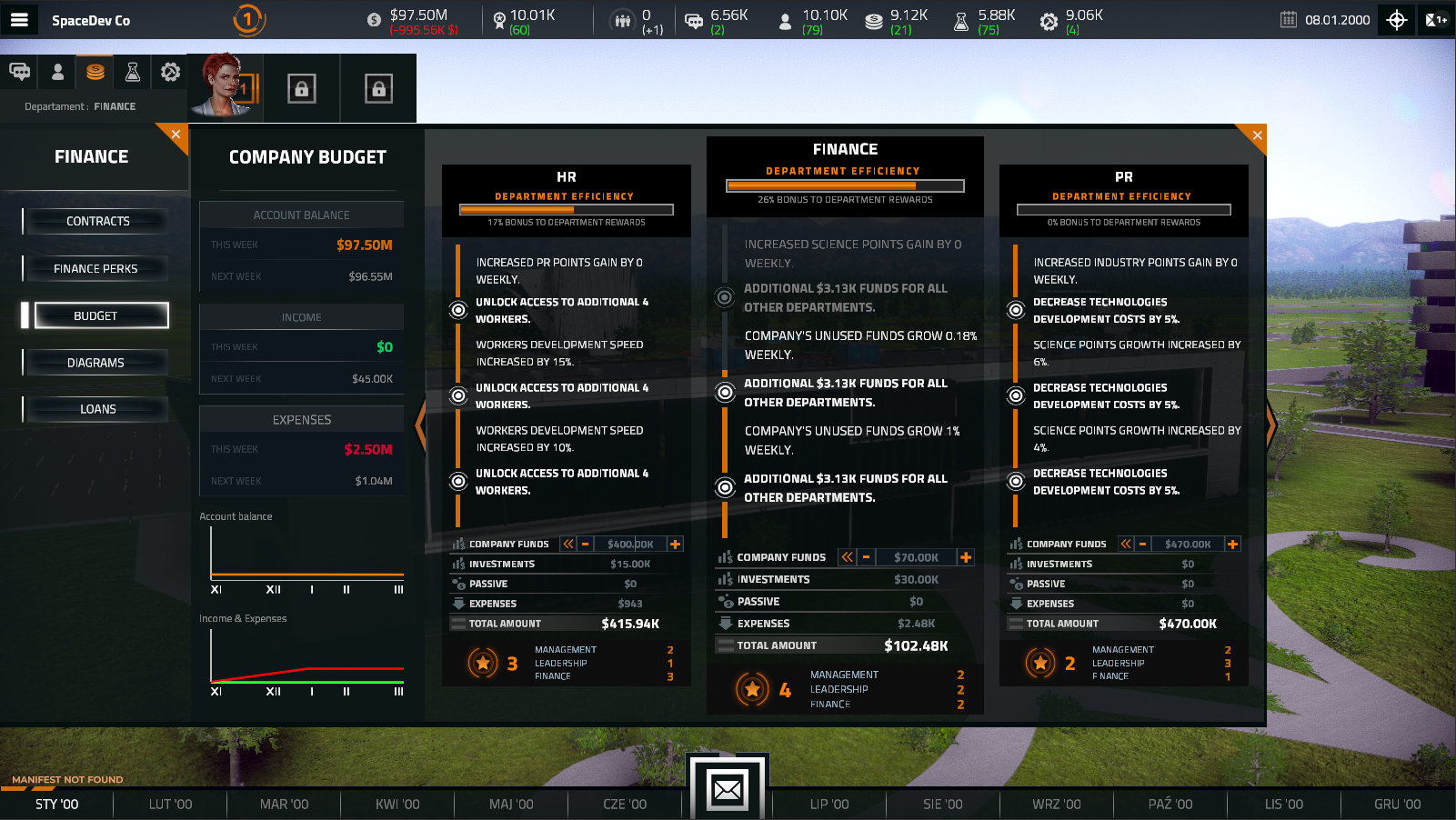 You already know the importance of the PR & HR, Science, and Production facilities. They are all key components of a successful space company, but they also require funds to be built. Now that's where the Finance departments come into play!