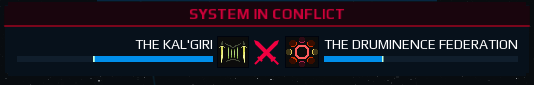 Conflicts can occur between the current system owner, and the faction of a neighboring system (neighbors via jumpgates count too). Once the conflict begins, special battle fleets will spawn, and battles will erupt throughout the system. These look similar to distress calls, but have a pair of crossed swords (forming an X) in the middle. As distress calls, battles and just general mayhem happen, a faction will gain conflict points. Whichever faction reaches the goal first, wins.