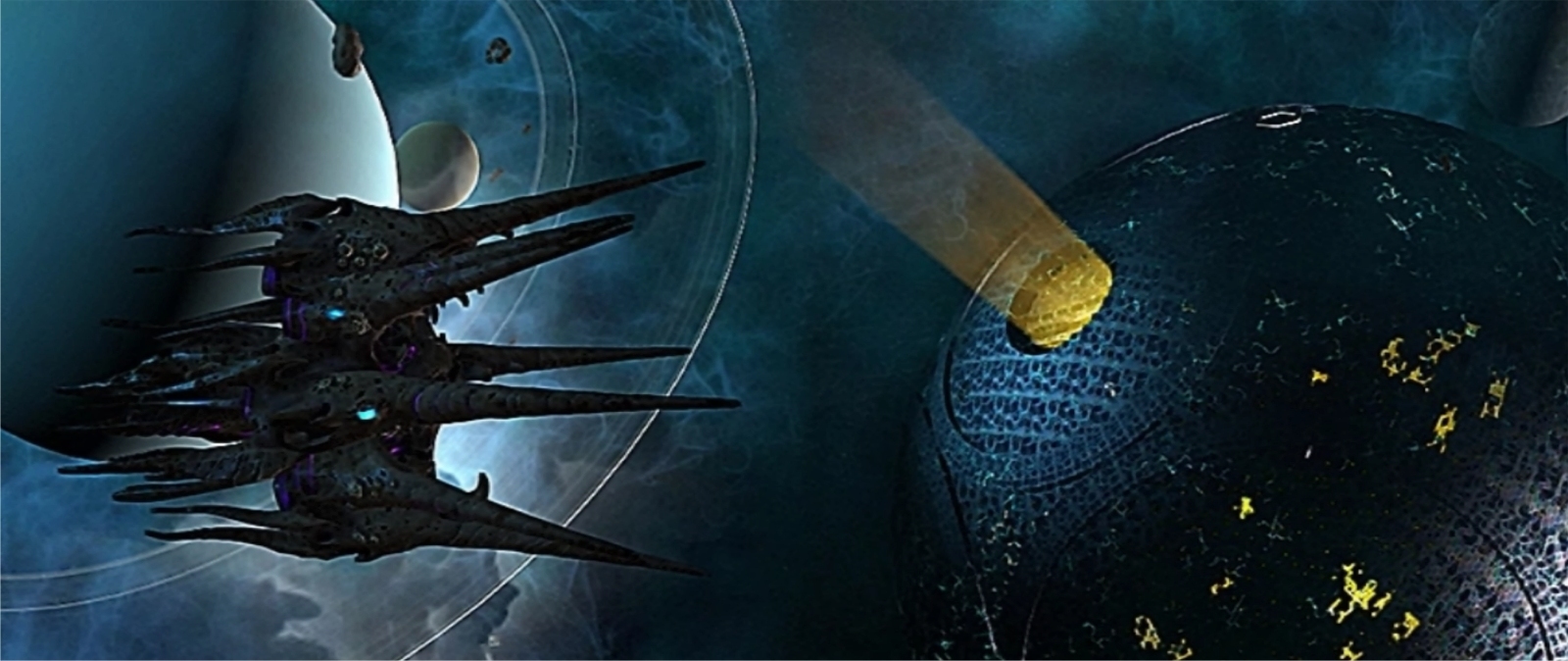 Being on opposite sides of the galaxy, the two very different races, one being highly technologically advanced, the other being organic spacefaring creatures -- were given the chance to develop and advance through AI-controlled Sol and Genari territories before making first contact somewhere in the middle of the galaxy map. Initially, the Ma'Alaketh had the advantage, taking out the vulnerable and unshielded Hive organisms from afar with their powerful particle beams. But over time, the Hive hordes kept consuming everything in their path, eventually outnumbering the Ma'Alaketh.