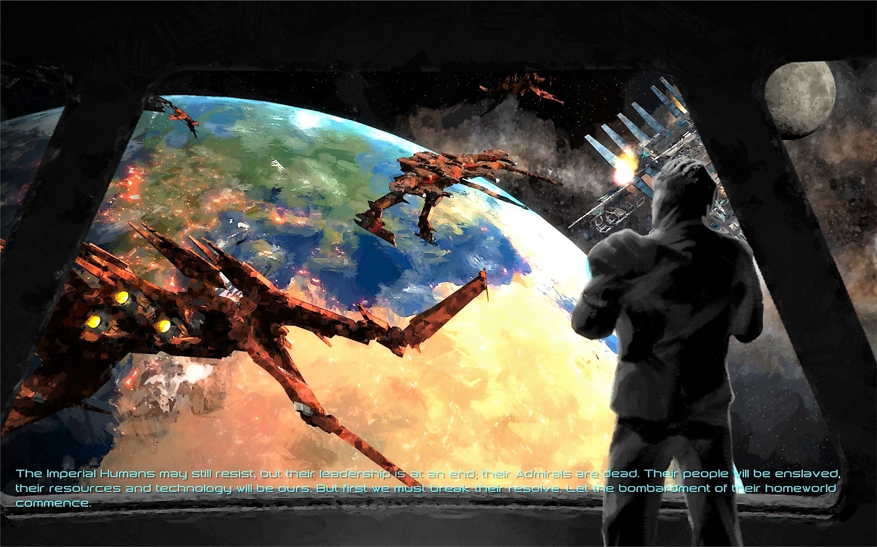 The Sol Colossus was an incredible achievement for the Imperium: It gave the edge in the war of attrition against the Genari Star Empire. The Genari matriarchy was falling behind on advancements to engines and weapons, putting them in a disadvantage when it came to battleships and dreadnoughts. But it was the awakening of the Perseus Hive and its decimation of Genari bases that had Sol command concerned with a possible greater threat. Although most of the Hive focus was in Genari territory, they were also starting to encroach dangerously close on Capella. Upon studying some of their larger and more dangerous 'Entities', it was realized that swarms of these could easily overcome the Colossus itself. A new, more robust platform was developed, especially after McKellan Engineerings' breakthrough of mating six engines made a three-million ton warship possible. It came to be known as the Titan, a one-of a kind dreadnought mounting an array of twelve of the most powerful beams in three different arcs that could decimate a single Hive entity with one volley. With enough power and detection range as a defense station, it can target enemies from an extended range and land hits before they ever have a chance of getting close. Its sheer size also allowed for two advanced repair bays which can help the dreadnought repair more quickly, or do the same to other ships nearby.