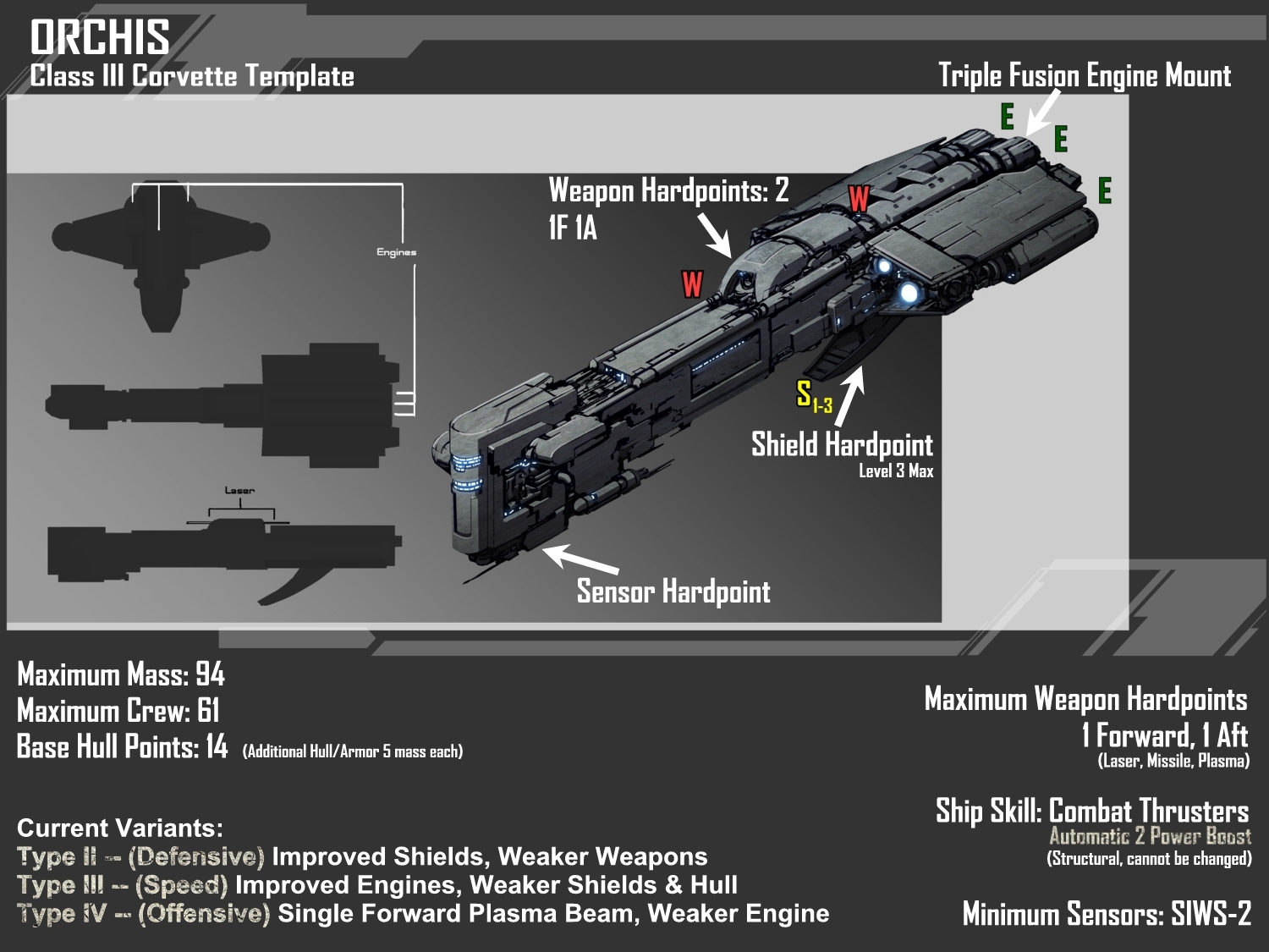 As this is the first run on the contest, we will start with one of the simplest designs -- the Orchis Class III Corvette.