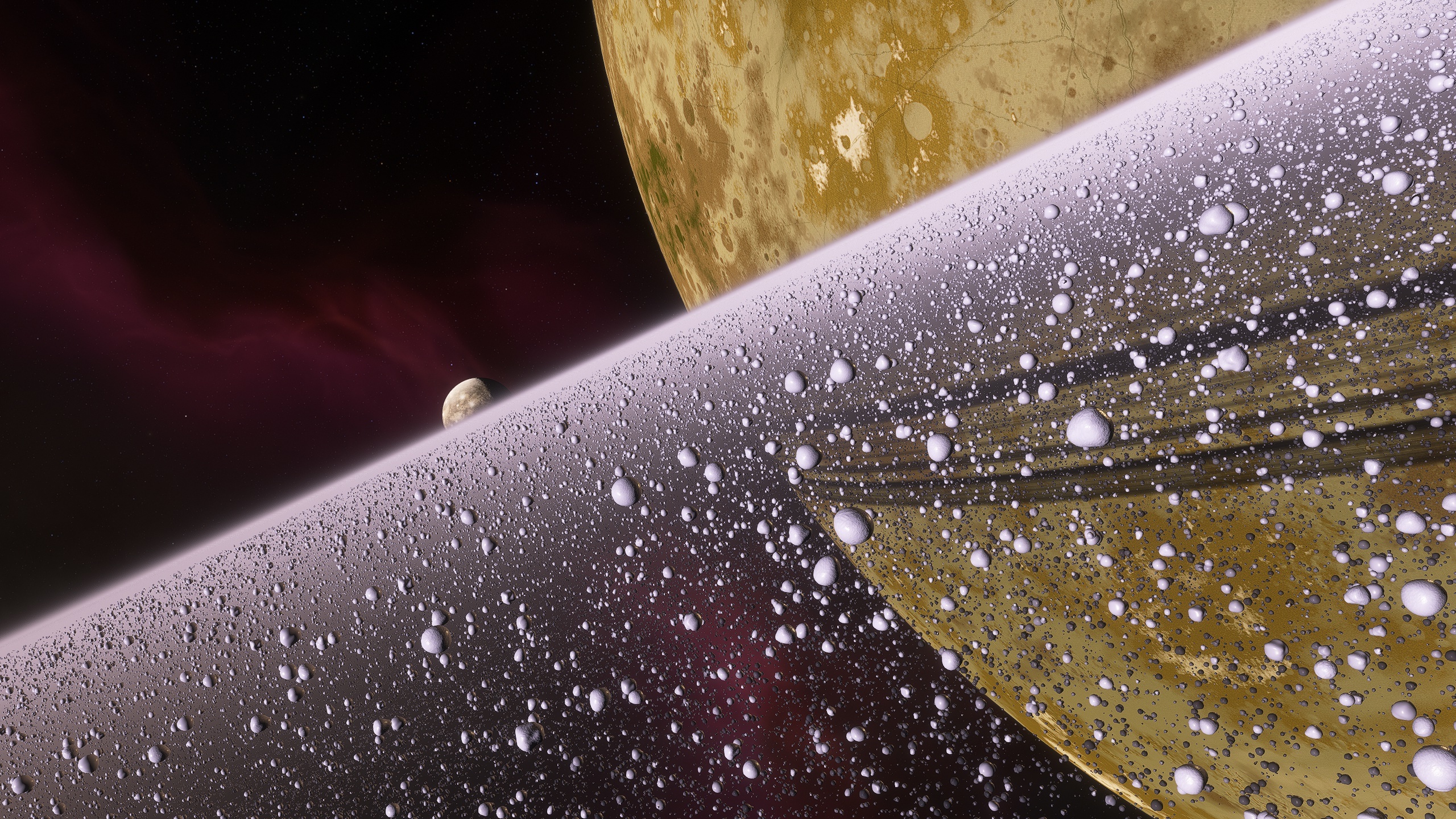 Particles which are far away slowly disappear and fade into "dust", like distant snowflakes in a blizzard which you cannot resolve with eyes. This dust effect has illumination which corresponds to the integral (averaged) illumination of rocks. There is also real dust in rings, which can be seen for example in Saturn's E ring, and it has a different illumination model. At an even greater distance, volumetric rings are blended into an upgraded 2D rings model. Why? Because 2D rings have almost no performance impact, which is obviously good for distant planets and preview images in the Wiki and Solar system browser. And 3D rings can't really overlap with the parent planet correctly, because it may have transparent layers, so the rings rendering must be split into multiple stages. In reality ring particles are extremely tiny compared to the rings size and distance to the planet, so this approach is reasonable. Of course someone will push limits in the planet editor, but you have been warned! :) Currently there are limitations on the thickness of the ring system, so really thick dusty rings like like the E ring of Saturn or the rings of Jupiter are not simulated properly (they look too flat).