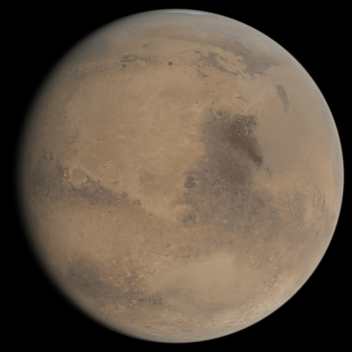 A few new and updated planet textures are included in this update. The surface (diffuse, color albedo) maps of Mars and Pluto have been updated with more accurate versions. The Pluto map was made by FarGetaNik, while the Mars map is the same as the old one, with improvements to color and contrast accuracy. Saturn's moon Iapetus has been updated with a totally new set of textures, created by Kexitt, which combine real data with artistic interpretation for a much more consistent appearance while still being pretty accurate. You can see screenshots below of Mars, Pluto, and Iapetus respectively: