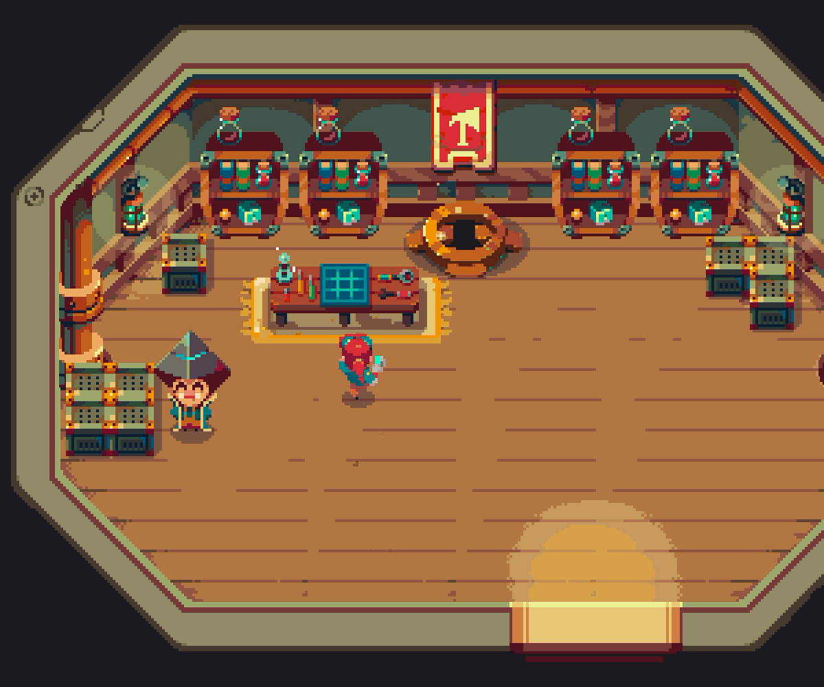 We knew early on in development that we wanted to make science play an important role in Sparklite. We wanted the people of Geodia to revere science in an almost religious way. Our main character, Ada, is herself an engineer and several of the townspeople also have scientific roles like Professor Corwin, the biologist.