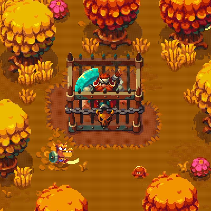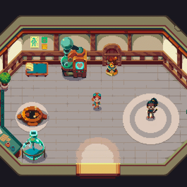 One of the more subtle aspects of Sparklite that we wanted to develop is the sense of world-feel - that is, where most objects respond, at least in some fashion, to the player’s interactions. Whether it be a small visual shake, or subtle audio effect, we like how these details make the world of Sparklite feel alive.