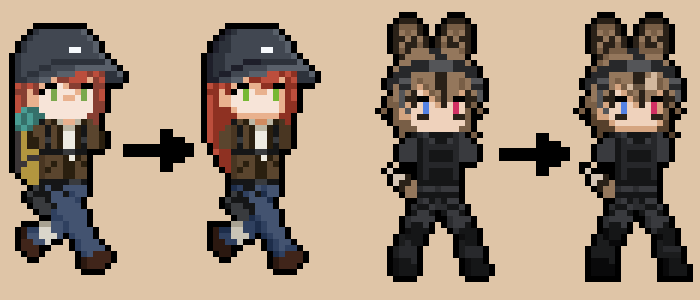 Reworked all character sprites. Enemies also have black outlines added. To increase visibility