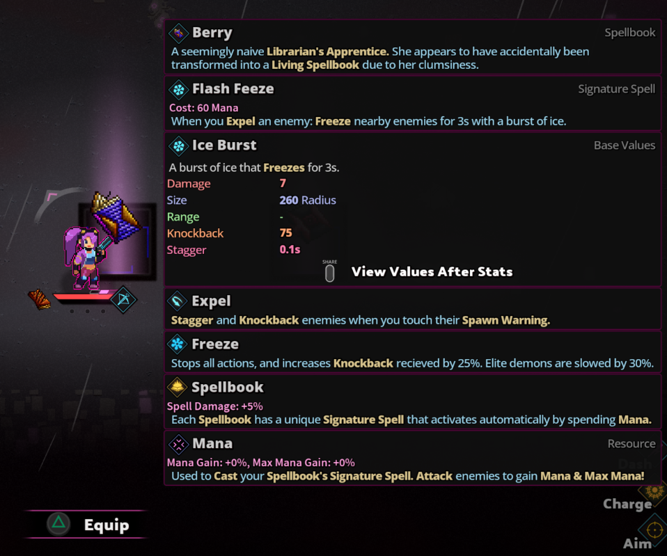 New tooltip system that displays info about your stats, detailed info on attacks & spells, and also displays a box of all upgrades you have that share the same tooltip. You can press the "View Embedded Tooltips" button to dig into these tooltips and view the tooltips of the upgrades that are being displayed inside the original tooltip.