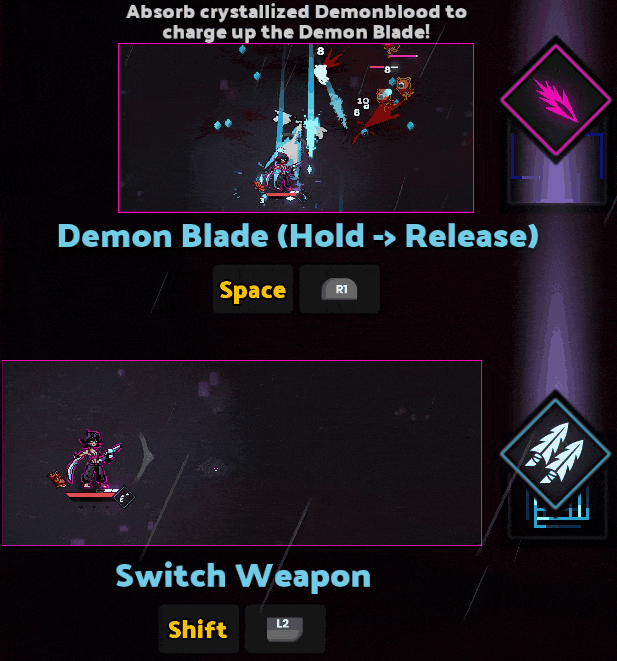 Cut down enemies with the Demon Blade at the start and end of your dash. All mana is spent to enhance & repeat the effect against nearby enemies.
