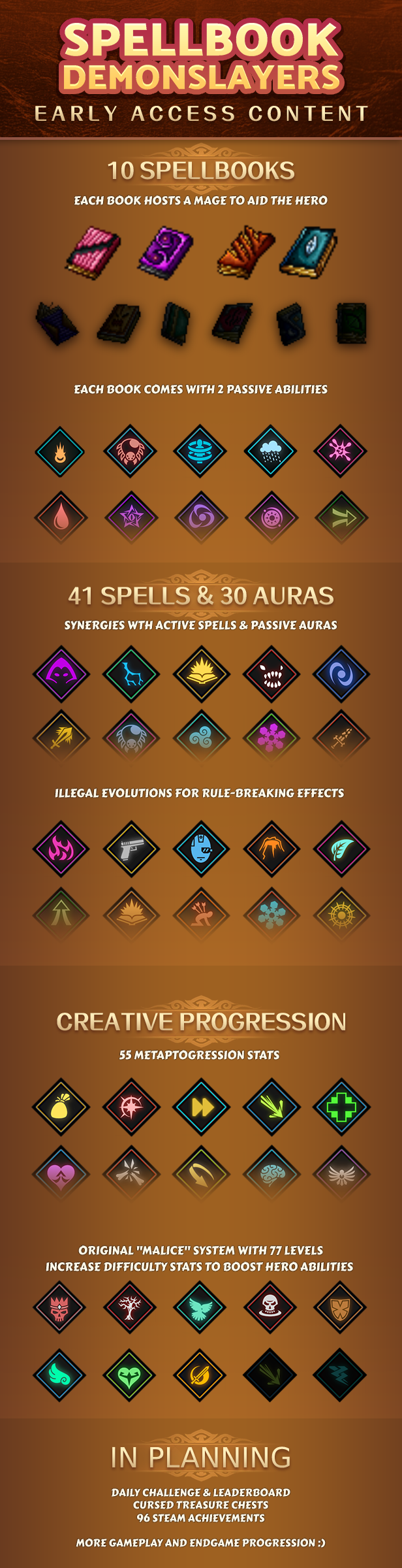 There will be 10 Spellbooks in total in the Early Access. Each book has: