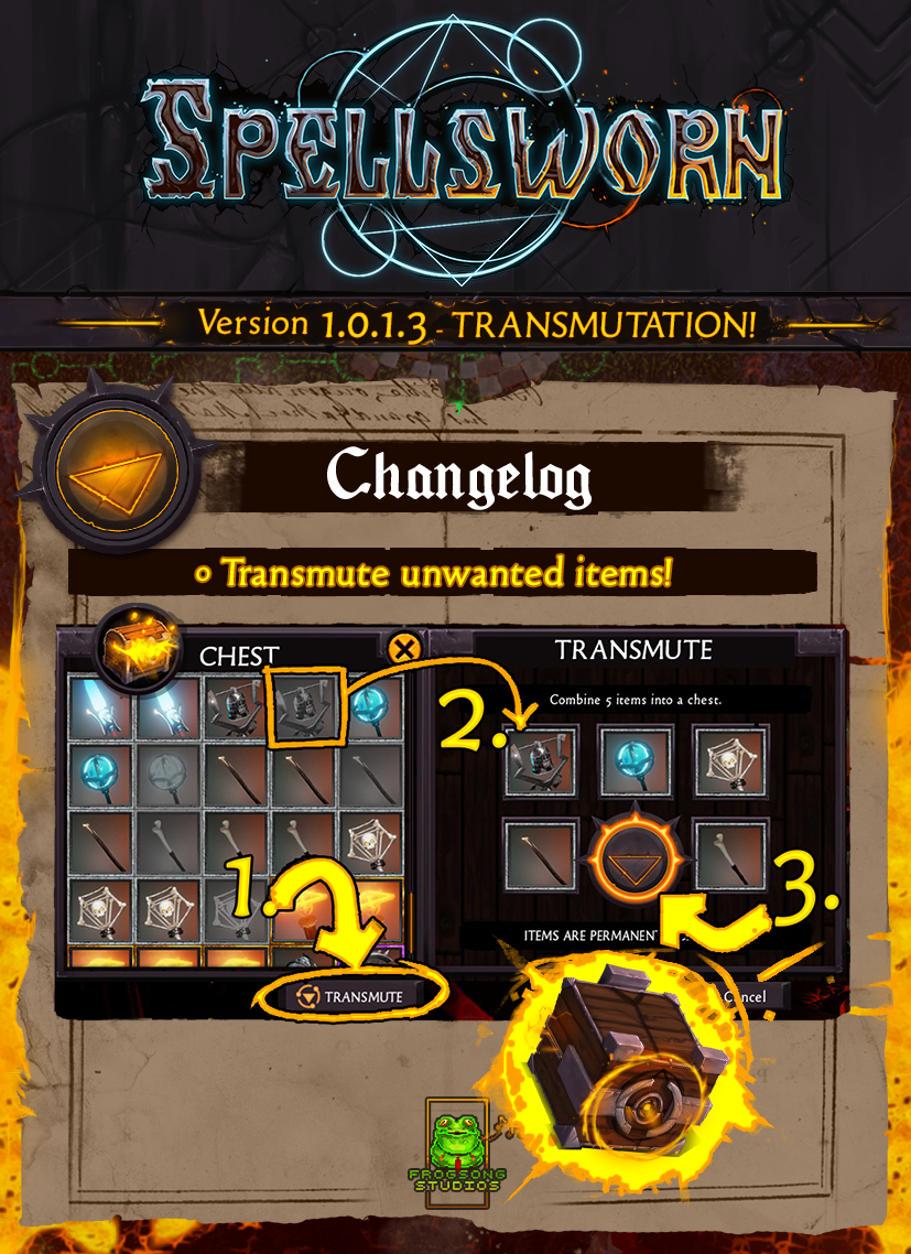 For this patch I am proud to present a big and long sought after feature.The transmute system! Simply combine five unwanted items together and you will get one treasure chest out of it. It makes no difference between item rarity or skins, so use it wisely!