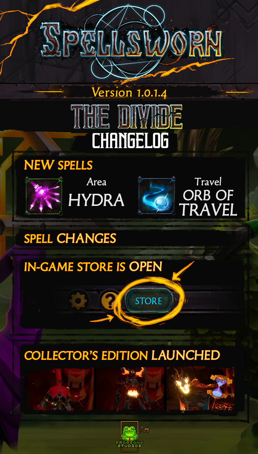 Today I have some very cool stuff to present to you! first of we have two BRAND NEW spells. We hope they, alongside the other changes we made will spice some things up. Secondly we can finally open up the shop and present you with some unique cosmetic items for sale. Nothing will be removed or changed from the regular treasure chest. Thirdly we have the Collector edition available with even more stuff in it including the soundtrack!