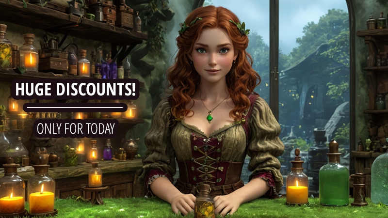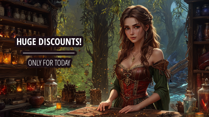 In the corners of the shop, 🍹bottles with potions and concoctions shimmer – today they are sold for half price, because even a hero needs a recharge. In the next row, 🌀weapon illusions sparkle with magic - the most skilled craftsmen are ready to sell them with a 25% discount, so that your weapon shines in a new way. And if you want to emphasize your status, take a closer look at the !⚔back decorations - only today they are available with a 35% discount!