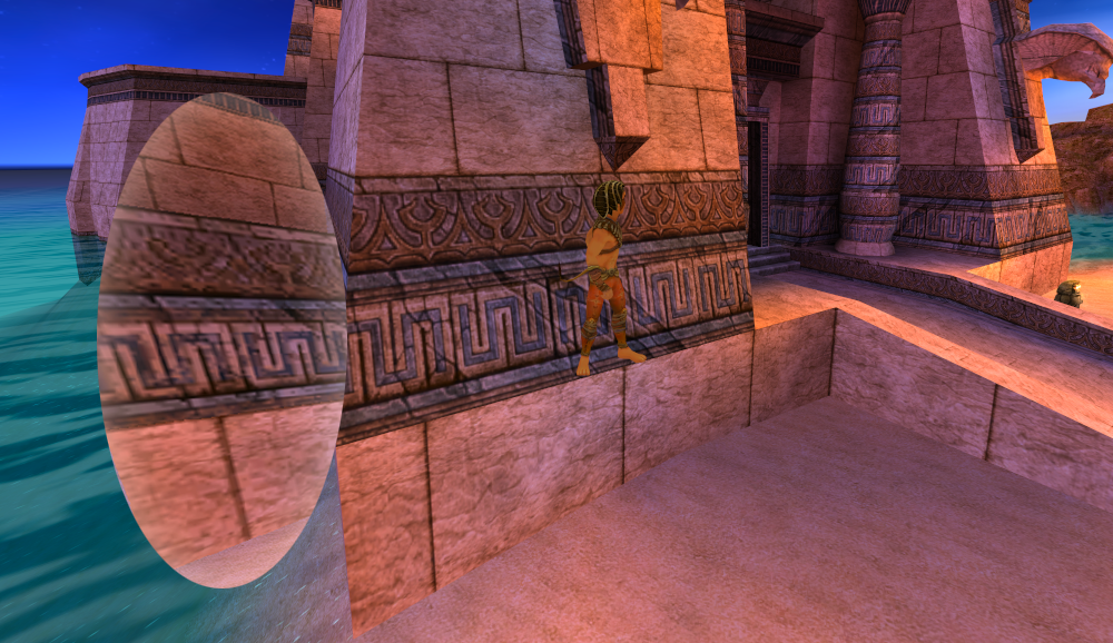 These upgrades mostly cover common gameplay elements; like buttons, statues and levers and, more specifically, Heliopolis Exterior, Anubis Wall, Abydos Canals and the Uruk Intro. We will probably keep adding more original assets in zones that still need some care, like the Lost Temple, some Mummy dungeons and Luxor.