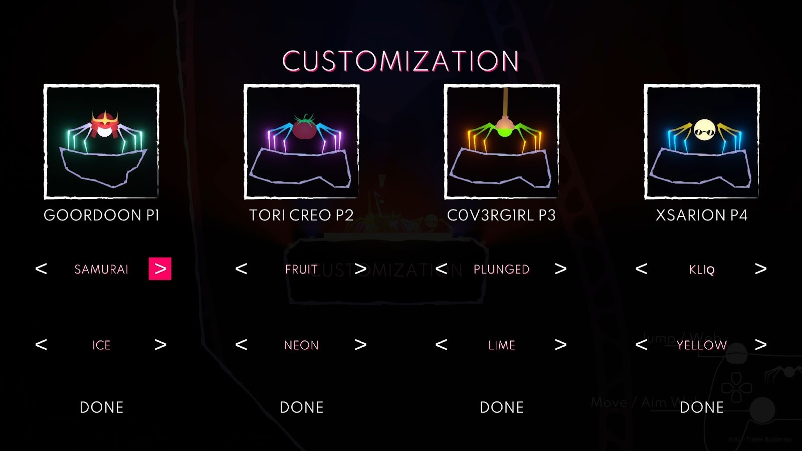 Who (or what) do you want to be today – a samurai? How about fruit? Depending on your mood, choose different hats and colors for your spiders!