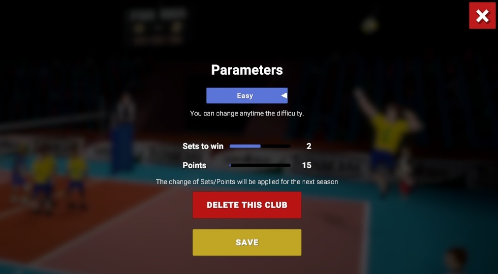 MyClub - The change in Sets/Points will take effect at the start of the next championship/tournament