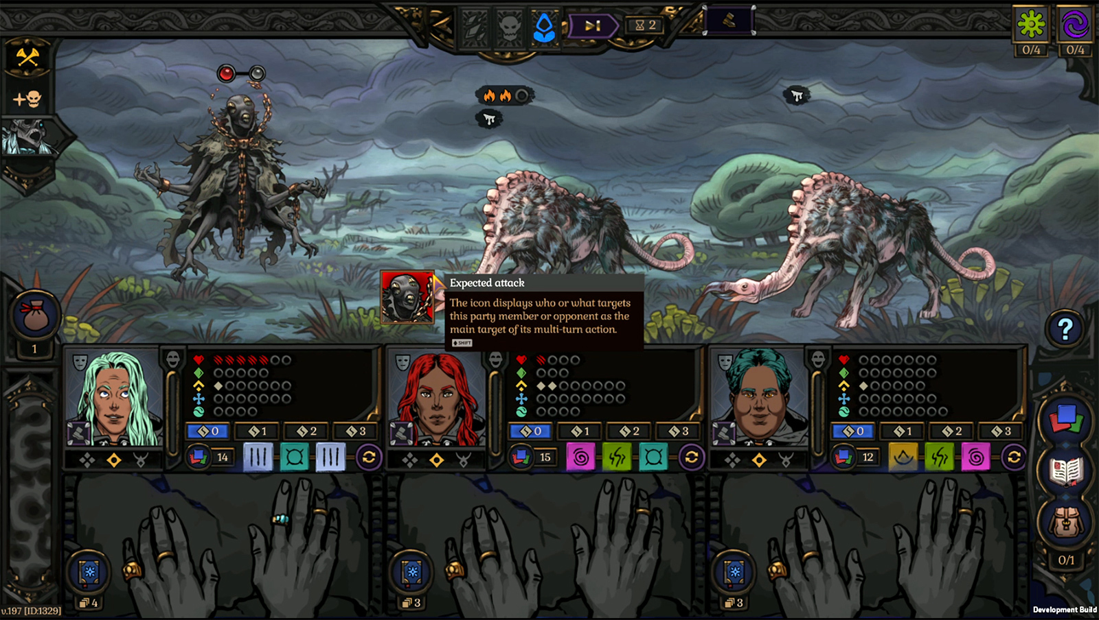 With version 199, we make the next step and display the actual expected attack if you hover over the multi-turn indicator – in this case, it's 2 tokens of frost to every party member: