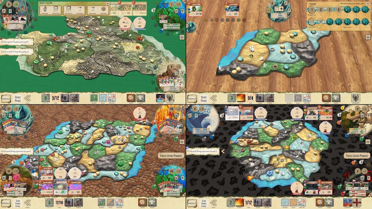 Want to try something different? Now you can customize your Spirit Island experience with new playmat options. Two are included in the core game, two more come with Promo Pack 1, and two more come with Branch & Claw. Visit the Options screen from the main menu or in-game to try them all!