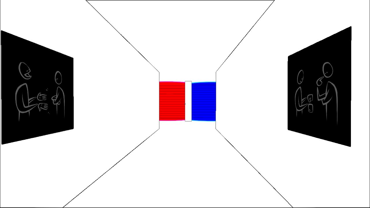 What we created in the split, however, is a slightly different variety of portals than in Portal, and more similar to the one from Antichamber. In real life, it can be compared to a room with a Venetian mirror. When we leave the room into the open space, we actually enter another specially prepared room.