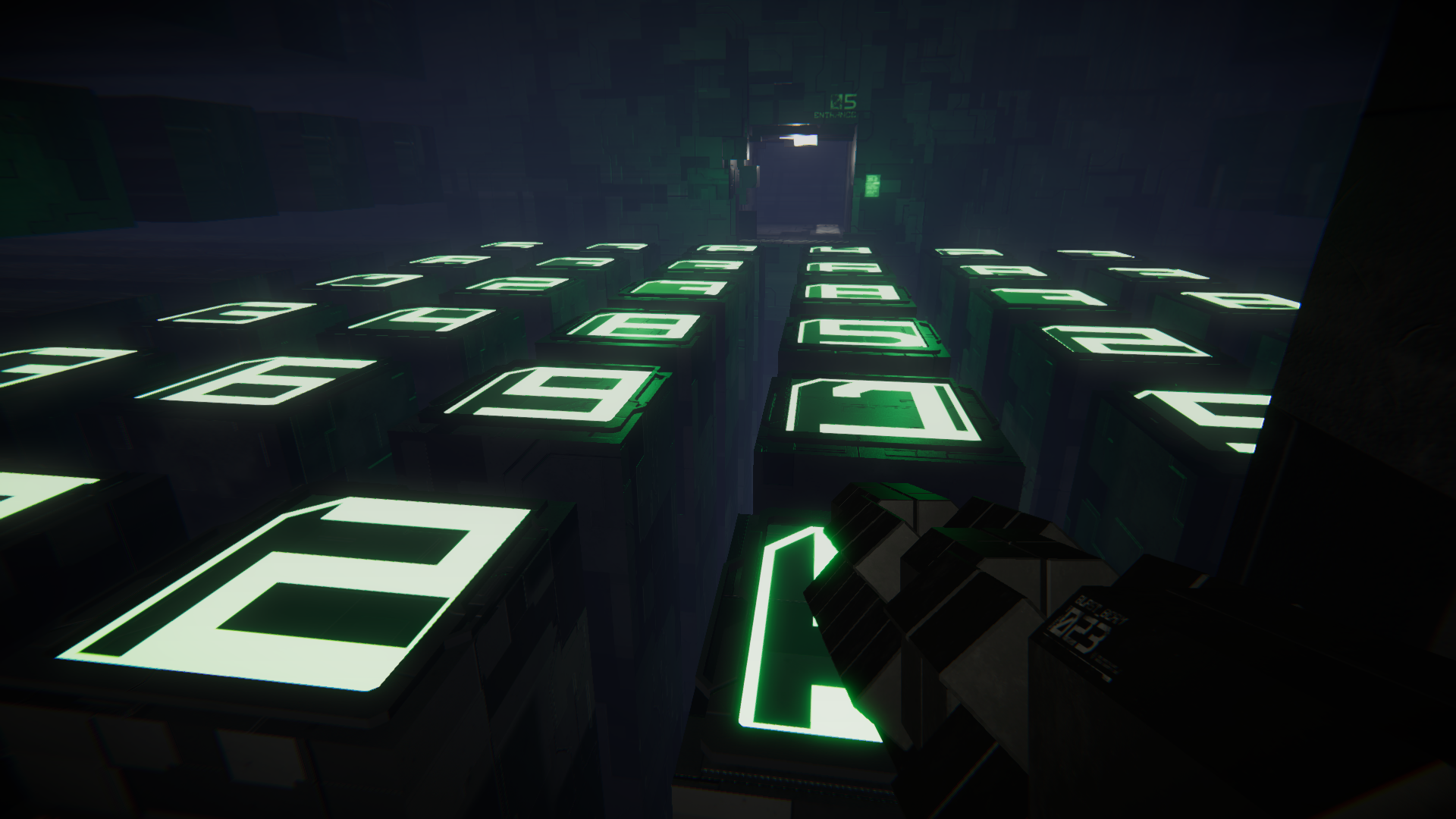What is the example puzzle about? You have a kind of number pattern here, there are holes in some places. The boxes are positioned so that you can only jump on elements next to or diagonally. Before we even enter the fields, there is a written order on the walls that you will have to remember. If there are numbers 3, 6, 2, 3 consecutively, it means that first we have to jump to the tile with number 3, then 6, 2 etc.