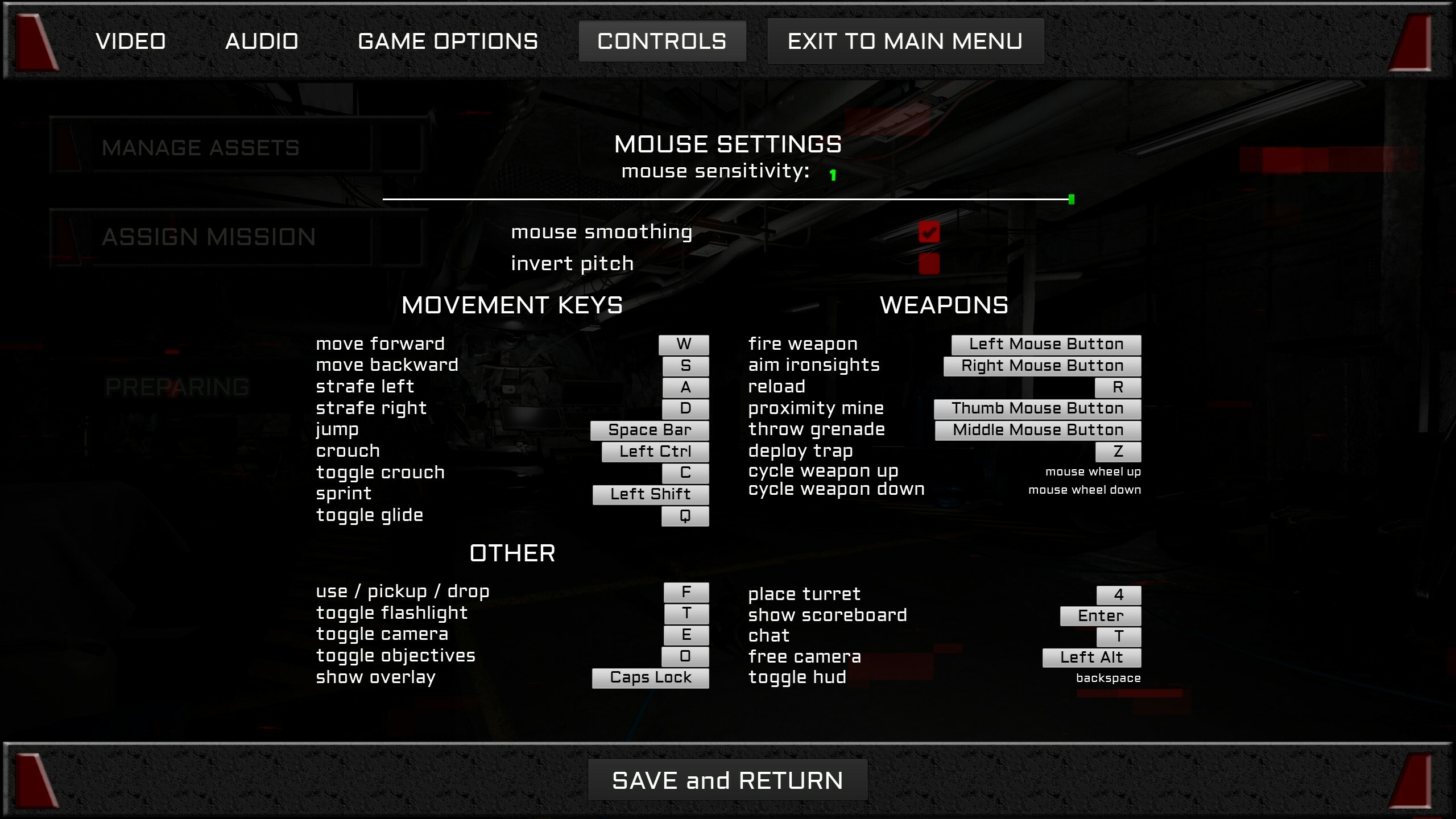 CONTROLS: set custom keys for actions, weapons, movement and ui!