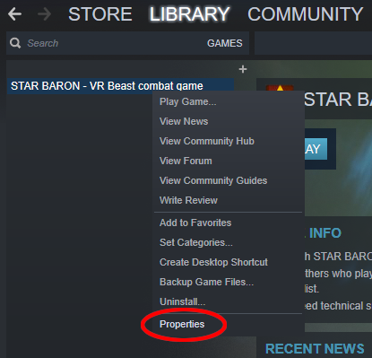 1) Right click ‘STAR BARON - VR Beast combat game’ and open Properties