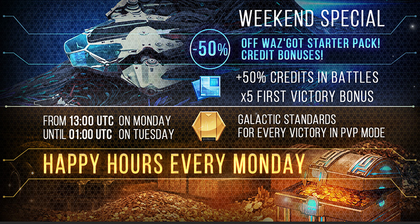 Pilots, the weekend begins! Time to prepare your fleet for new victories! UMC offers all pilots a 50% discount on the Waz'Got starter pack!
