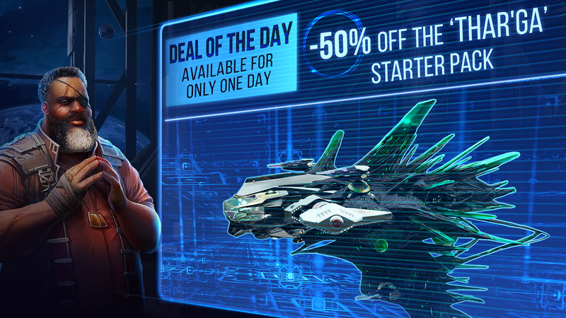 Only today, July 21, we offer a 50% discount on the Thar'Ga starter pack! The pack can be purchased both in the in-game store, and directly in the Ellydium ship tree.