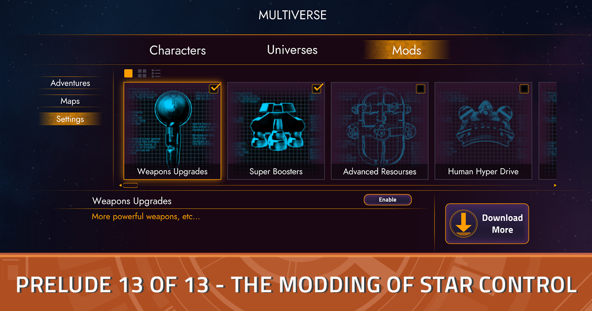 Browse (and upload your own!) the player-created mods on the Steam Workshop through the Multiverse option on the Star Control: Origins main menu. If you're looking to get started with crafting your own quests, dialogues, and characters, check out the modding guide here!