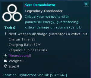 We have replaced the Nanite Device and the Psionic Jammers with the Seer Remodulator, which guarantees a critical hit every 2 seconds.