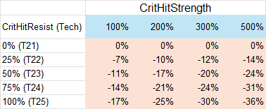 As you can see in this table, as you go up in Tech the Critical Hit Resistance of ships and drones increases. This will reduce your DPS by the amount listed. These numbers assume a static 100% Critical Hit Chance, but higher Critical Hit Chance values will bring you back to a 0% reduction.